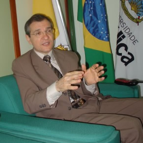 Wolmir – Nós temos o aspecto acadêmico e temos outras possibilidade mais gerais da universidade. Do ponto de vista acadêmico, são duas alternativas de imediato que são mais fáceis do ponto de vista da legislação e do ponto de vista da implementação pedagógica curricular. A primeira é a educação à distância. Temos na UCG a estrutura organizada para educação à distância. Temos um consórcio entre as três universidades: federal, UEG e a Católica para oferecimento, em pólos de Goiás, de cursos de graduação em Física e, futuramente, Matemática, Letras, além de outros para atender as demandas e carências que existam de docentes qualificados, especialmente para as escolas públicas. Então é primeira possibilidade é a educação à distância, com prós e contras. O principal fato a favor é que se coloca um curso com baixo custo financeiro e também que o aluno não precisa se deslocar para Goiânia. Haverá, evidentemente, momentos de formação presencial para realização de provas. A metodologia é adequada e muito mais viável. O fator contrário é que a população ainda não se acostumou com esse formato de curso. Pensa que é curso à correspondência à moda antiga. Isso ocorre porque não conhece ainda toda a metodologia das novas tecnologias desenvolvidas para a educação à distância. Também não sabe que há um corpo docente que teve que se habilitar para esse formato de graduação, que é completamente diferente da educação presencial. Não sabe que há um acompanhamento personalizado pela internet e por telefone de cada estudante e também com uma monitoria local que acompanha essas turmas. Enfim, é uma questão de implementação que ainda precisa se consolidar em todo País. Em outros países da América Latina esse jeito de estudar já está bastante adiantado.