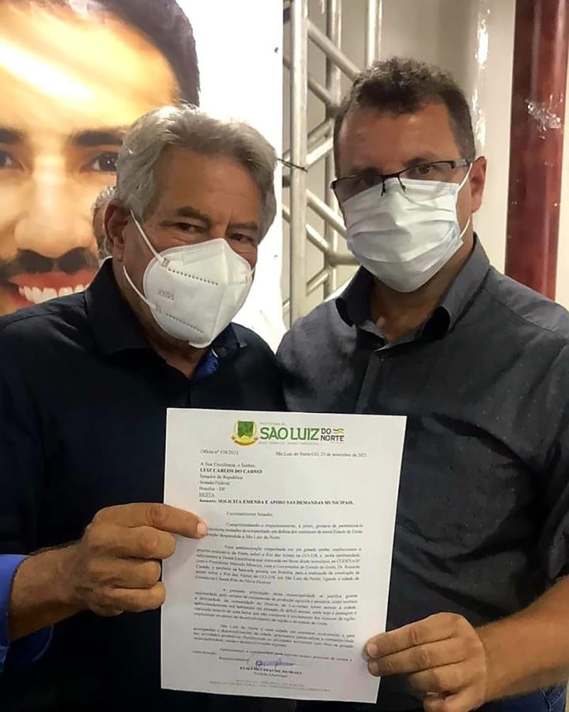 Durante agenda de trabalho com o Senador Luiz Carlos do Carmo, ocorrida na semana passada, por ocasião do Seminário Norte em Crescimento, em Porangatu, o prefeito de São Luiz do Norte, Elieudes Moraes apresentou diversas demandas do seu município, a exemplo da duplicação da BR-153, Ferrovia Norte Sul e sobre a Ponte da GO338 sob o Rio das Almas. Tivemos uma excelente reunião com o Senador, que se mostrou sensível a todas as nossas demandas, que também são uma reivindicação de toda a região Médio Norte e Norte Goiano, diz o prefeito.